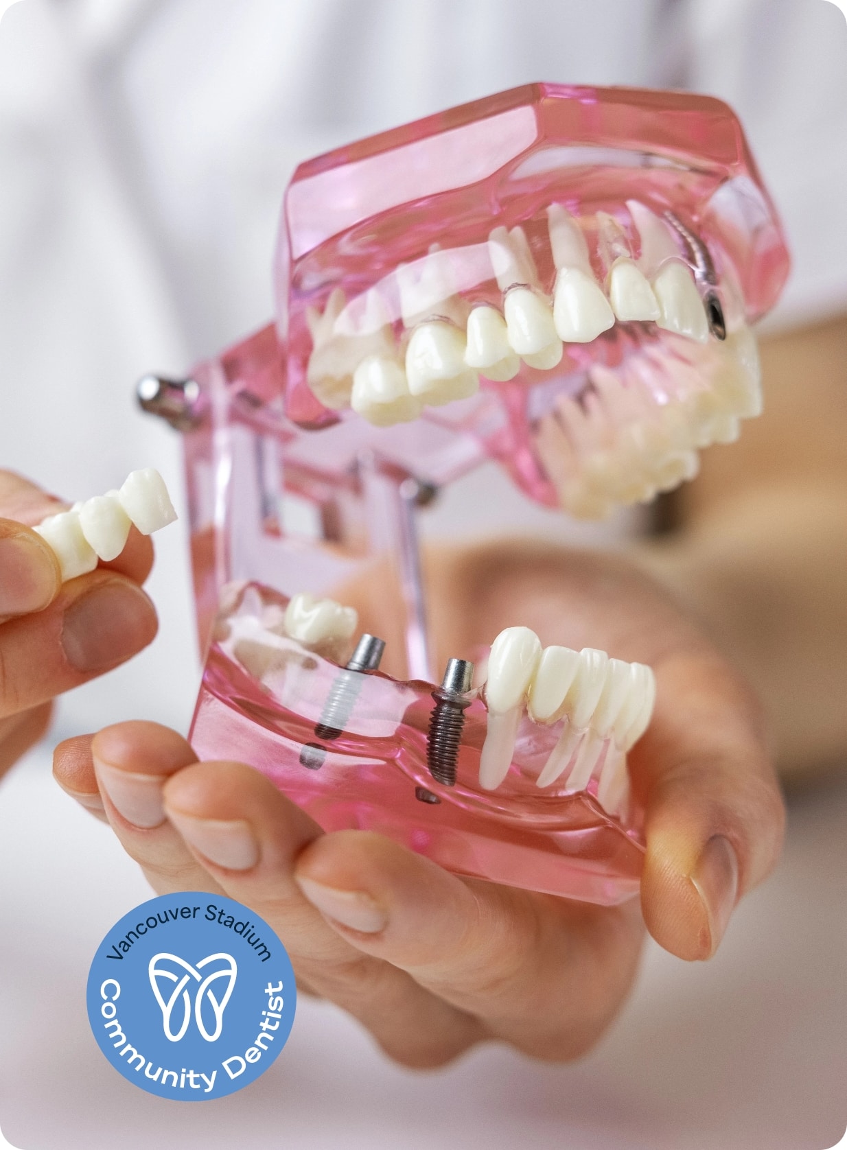 At Vancouver Stadium Community Dentist, every dental bridge is designed to match the shape, colour, and function of your natural teeth. Our goal is to create restorations that look natural and feel comfortable.